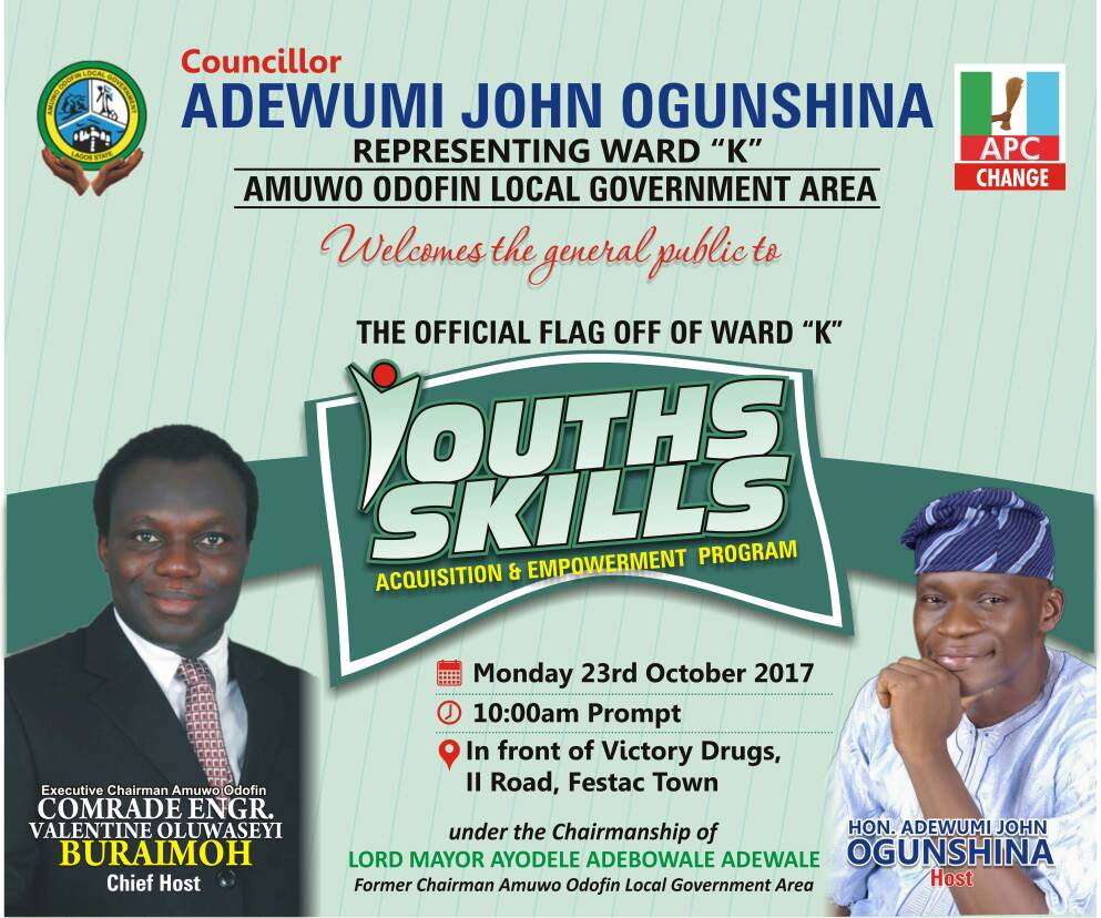 As part of efforts to reduce unemployment in Amuwo Odofin Local Government Area, a lawmaker representing Ward “K” in the local government, Hon. Adewumi Ogunshina has flagged off a skill acquisition and empowerment training programme for youths in the area.