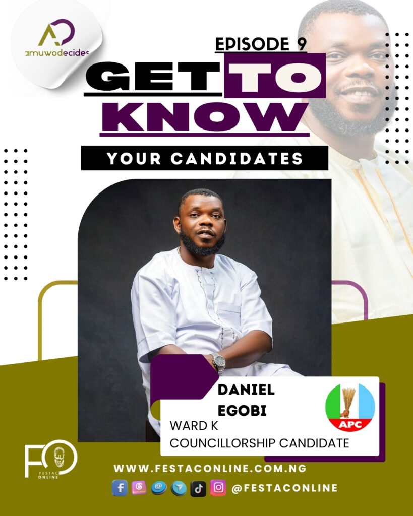 As the 2025 local government elections approach, Festaconline Newsmedia continues its commitment to spotlighting credible aspirants across Amuwo Odofin LGA. In this edition of Meet the Candidates, we introduce Egobi Osagie Daniel, a dedicated community leader with deep roots in the Amuwo community and a passion for impactful leadership in his ward Position Contested and Ward He is contesting for the position of Councillor in ward K, Festac town, Amuwo-Odofin Local Government Area.