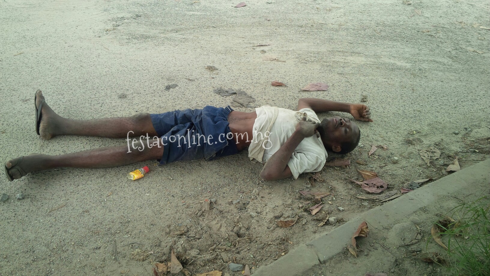 Barely 20 Minutes Ago, a young man was found lying unconscious on the road in Festac Town.