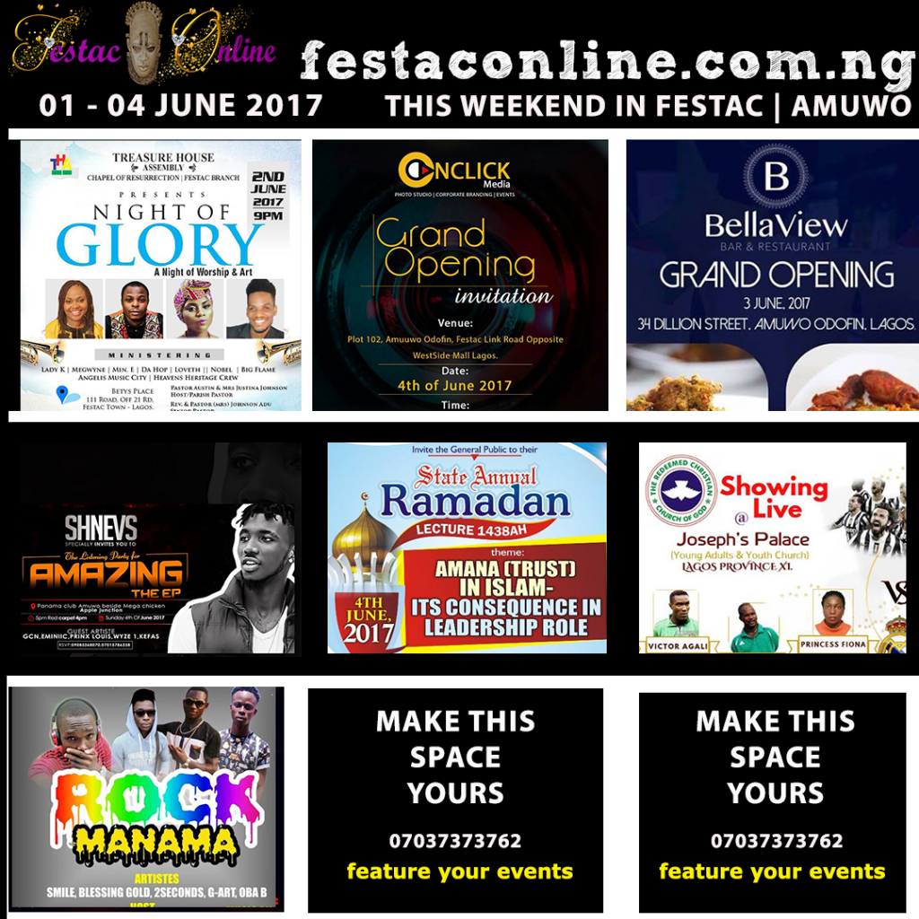 Festac , Amuwo Odofin would be full of events this weekend, check them out below