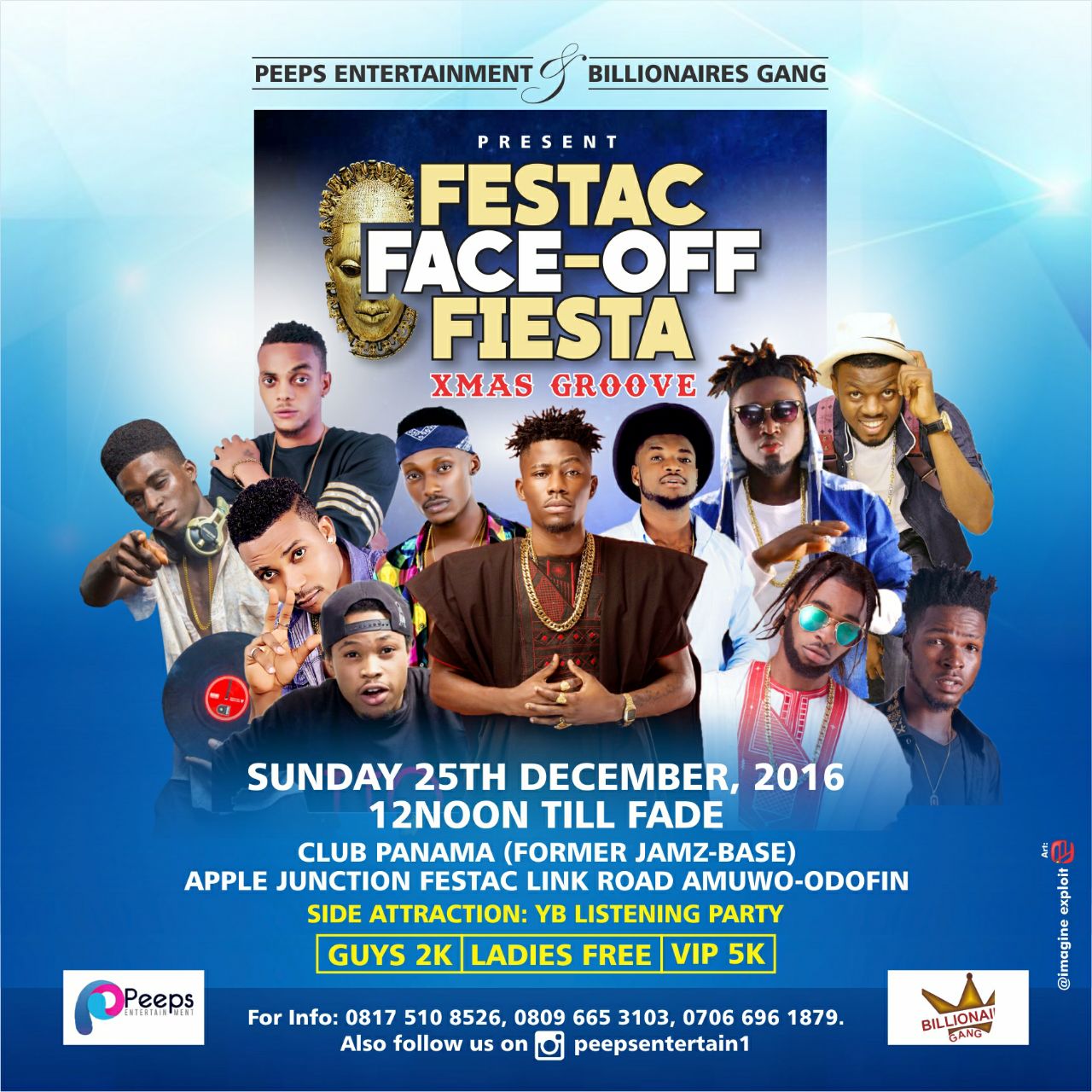 This Christmas promises to be amazing admist all as Peeps Entertainment & Billionaires Gang presents the Festac Face-off Fiesta.