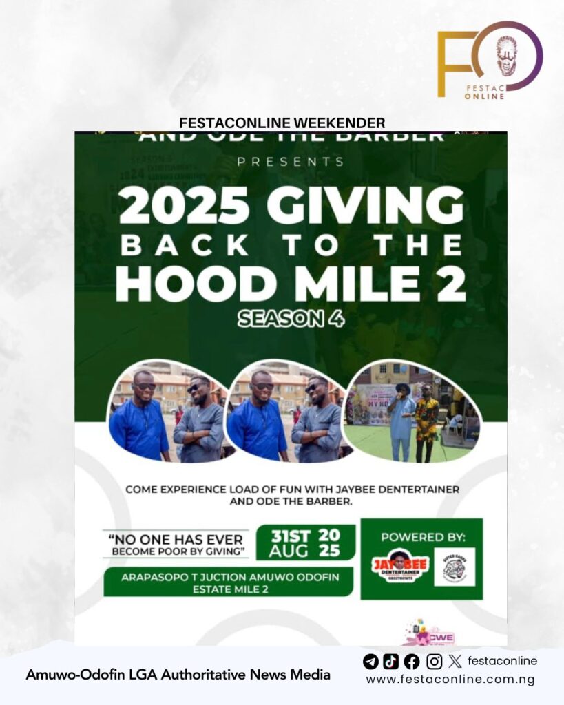It’s another weekend, and Festaconline Media has collated list of events happening in Amuwo Odofin.