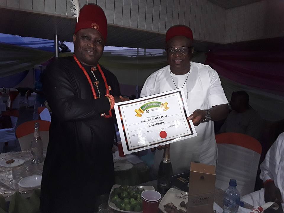Congratulations, At Igbo colloquium and Awards ceremony of Hon Akeem Bello member of Lagos State house of assembly Ezi ogo ndigbo of Amuwo-Odofin Lagos yesterday