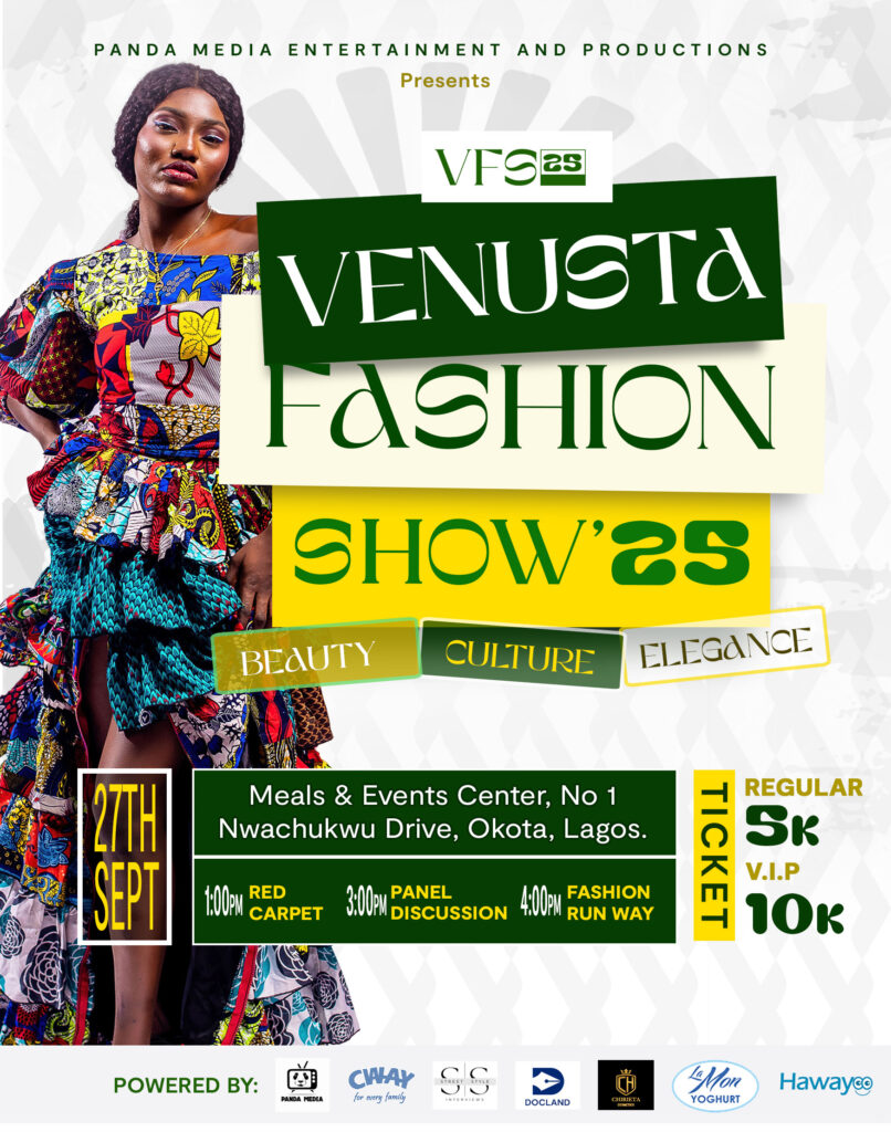 Over the years, VENUSTA Fashion Show has grown into one of Lagos’s must-attend fashion events, offering a runway for both rising and established designers to showcase their work before a vibrant audience of industry leaders, fashion enthusiasts, and media. With past editions featuring groundbreaking collections, live performances, and creative collaborations, the 2025 show promises to raise the bar even higher.