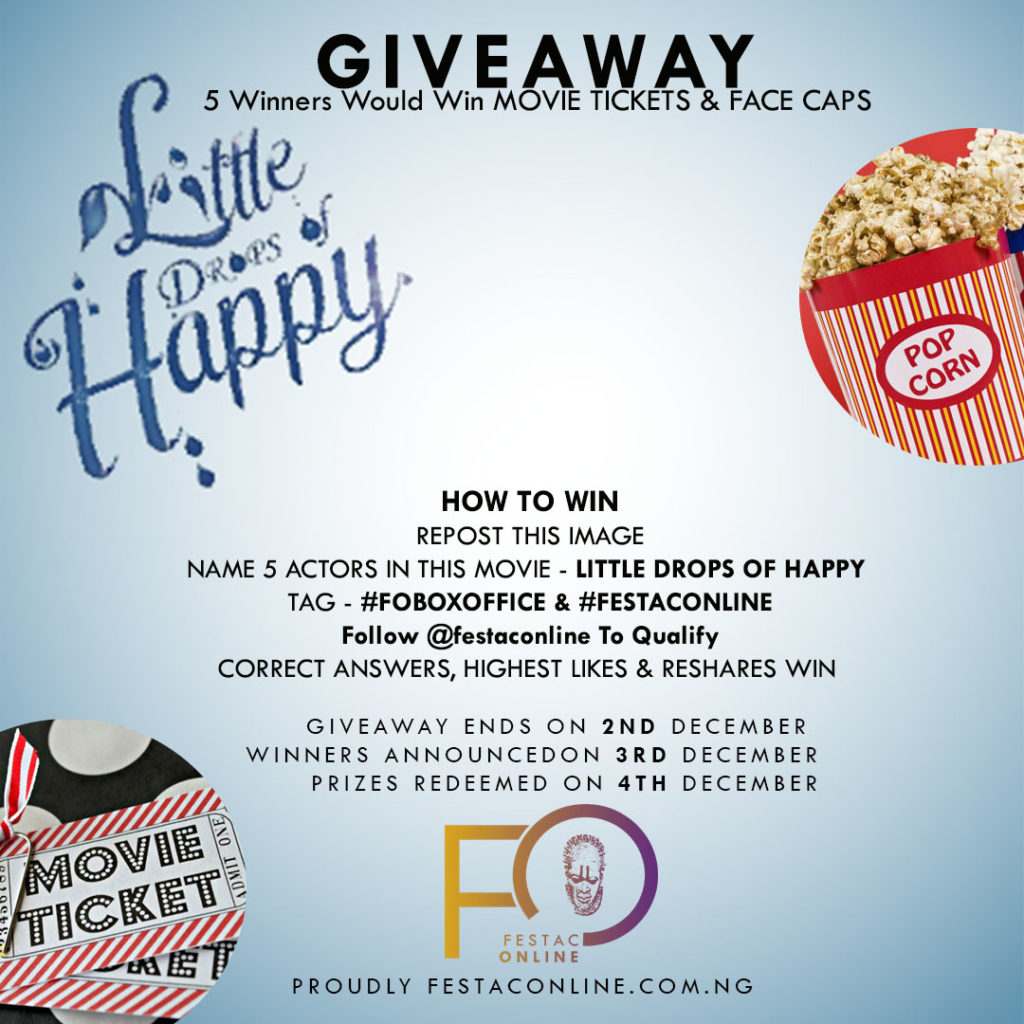 The competition ends today on 2nd December , Winners Would be Announced on 3rd December and Prizes Redeemed on 4th December 2017 at the Silverbird Cinemas, Festival Mall,Festac Town.